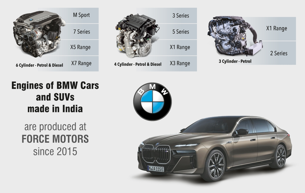 Established in 2015, Force Motors’ Chennai facility manufactures inline-4 and inline-6 cylinder engines for BMW’s India lineup including the 3 Series, 5 Series, 7 Series, X1, X3 and X5. The plant was built and commissioned in just nine months, adhering to BMW’s stringent global manufacturing standards.
