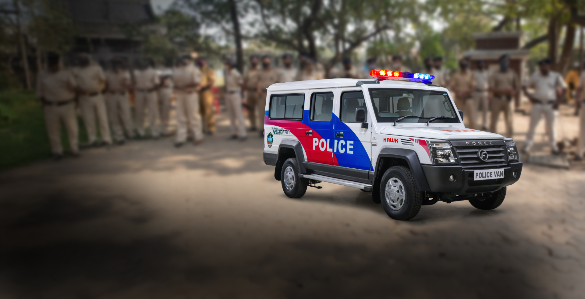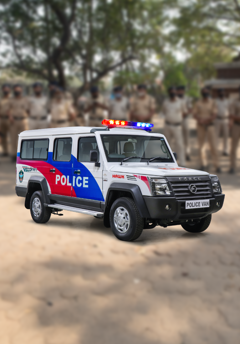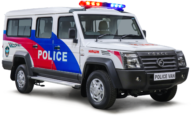 A fully equipped police van designed to patrol assigned areas and transport the staff and officers required to conduct investigations and interrogations.